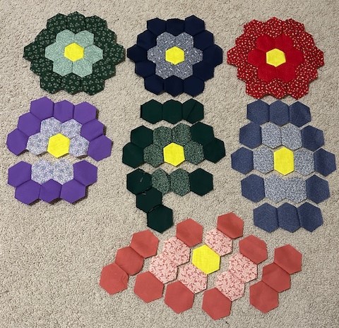 Go flowers go! You are making good progress! Do you work on them when you're with Mom? They are so cute and cheerful.